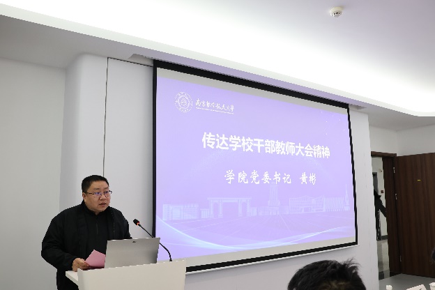 为贯彻落实党的二十届三中全会精神和全国教育大会精神,学习传达学校2025年干部教师大会精神,部署91探花 2025年重点工作,310日,91探花 召开新学期全院教职工大会。会议由院党委书记黄彬主持。