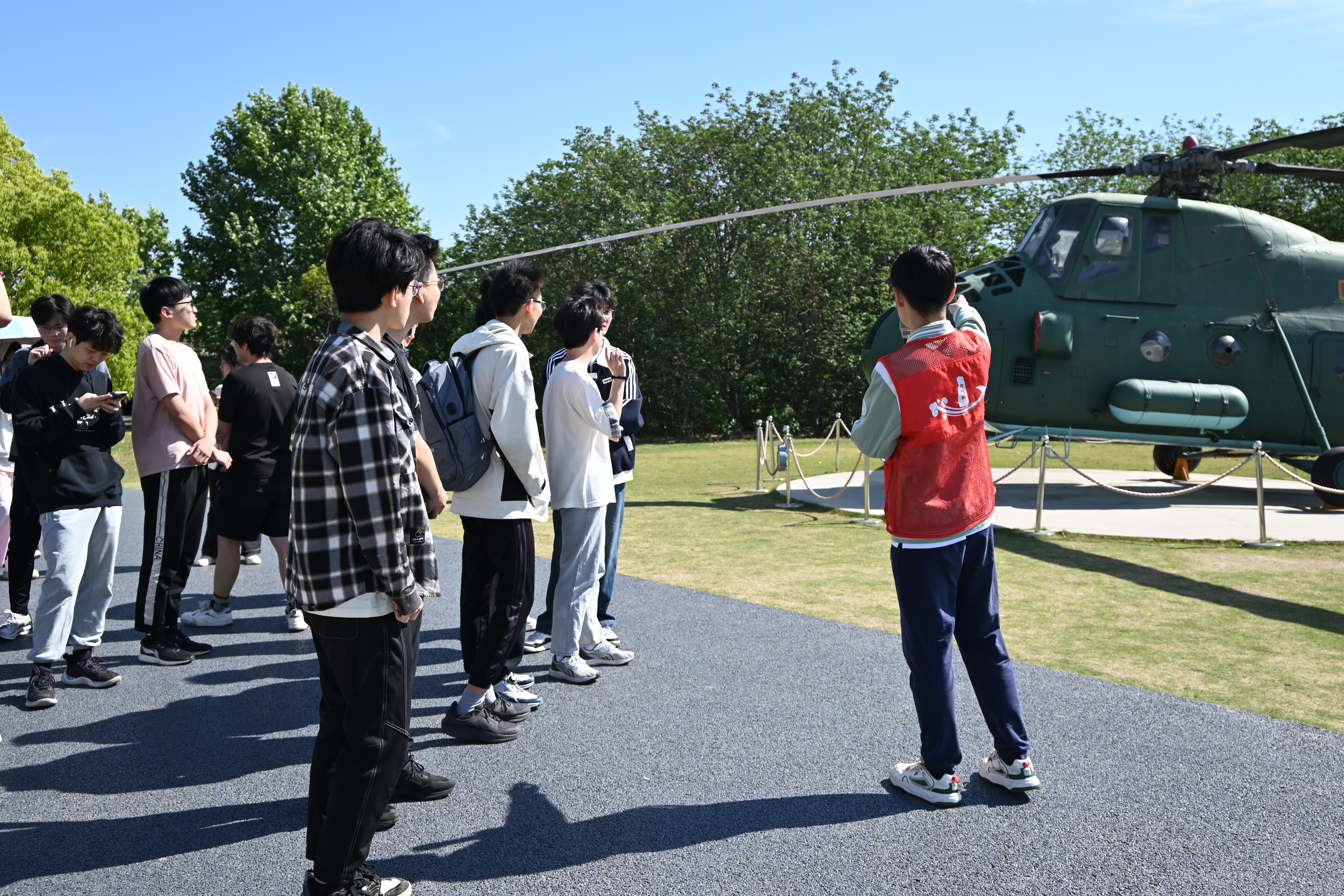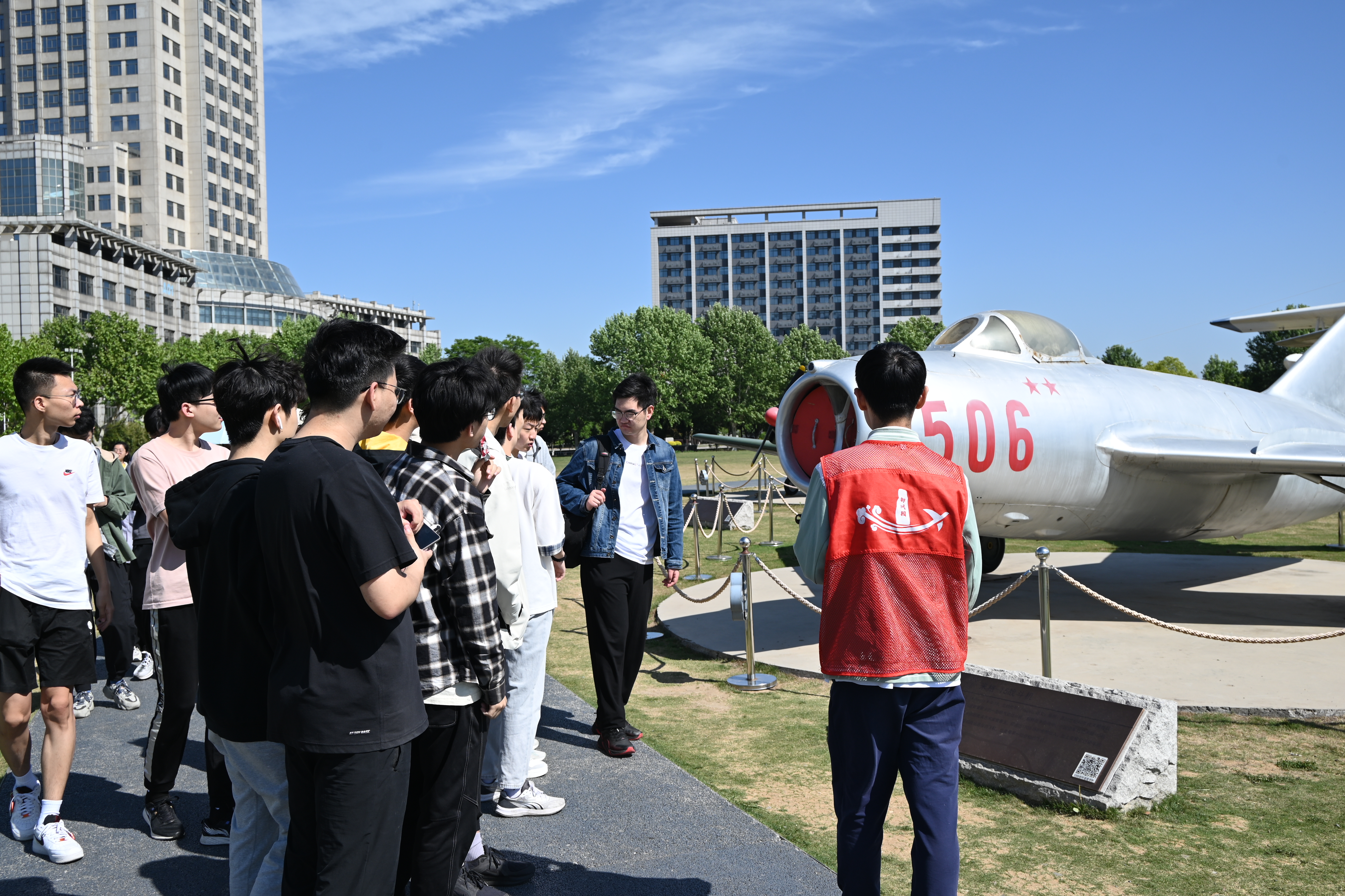 恰逢中国航天日到来之际,组织团员前往御风园开展主题团日活动。邀请讲解员讲解御风园中航空器的历史,感悟航空航天精神。御风园中有新中国自行生产的第一架飞机初教-5、我国第一种多用途直升机直-5直升机、歼8-IIAG600水陆两栖飞机等19架航空航天器,这些航空器都是无数航空航天人自主创新、攻坚克难的智慧结晶,象征着祖国航空航天事业的不断攀登与突破,见证着南航人对航空报国与航天报国的坚守。在讲解员生动的讲述中,全体团员深刻感受到了一代代南航人以祖国至上的赤子之心和甘于奉献的家国情怀,投身于航空航天事业。