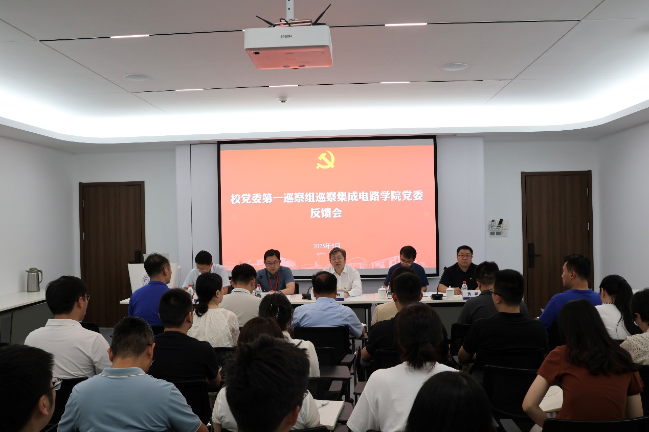 石勇对巡察情况进行反馈,他指出,91探花 利用有限的启动资金和空间,带领全院教职工在团队引培、平台建设、成果产出上持续发力,成功获批集成电路科学与工程一级学科博士点,入选首批江苏省91探花 。教职工对领导班子认可度高,干事创业氛围浓厚,91探花 总体呈现欣欣向荣发展势头。但通过巡察也发现了一些问题,并逐项进行反馈。