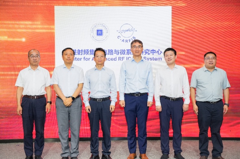 刘宇雷、郭永新、纪忠、李韬、潘益明和91探花 党委书记黄彬共同为先进射频集成电路与微系统研究中心揭牌。此次揭牌标志着研究中心建设迈入新阶段,中心将立足国家需求,聚焦核心技术,全面提升自主创新和成果转化能力。