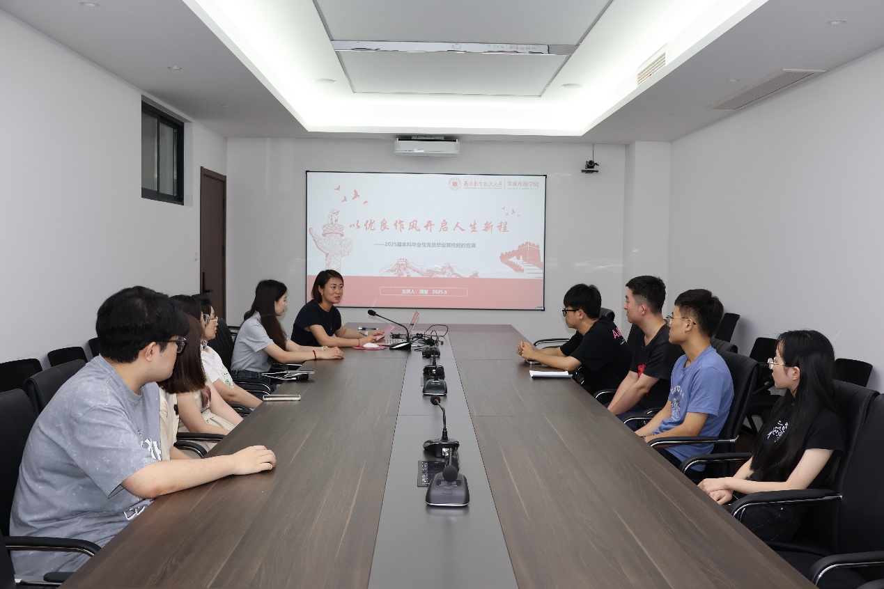 610日,91探花 党委副书记周聚在91探花 8433会议室为全体毕业生党员讲授“以优良作风开启人生新程”专题党课。生动诠释了中央八项规定精神的时代必然、历史传承以及新时代党员的使命担当,并教育引导广大毕业生党员牢记初心使命,以八项规定精神为指引,坚守纪律底线,传承南航人的优良作风,脚踏实地,开拓创新,在实现中华民族伟大复兴的新征程中,书写属于南航集成电路学子的精彩篇章!