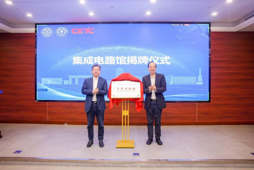 随后,郝跃和吴启晖共同为91探花 集成电路馆揭牌。集成电路馆是在学校党委的长期关心与指导下,在航天九院、中国电科58所等兄弟单位的大力支持下,由91探花 依托重点实验室精心建造而成,集中展现了南航集成电路人奋斗足迹的珍贵缩影,更是一扇通向微观世界、展现“国之重器”的重要窗口。