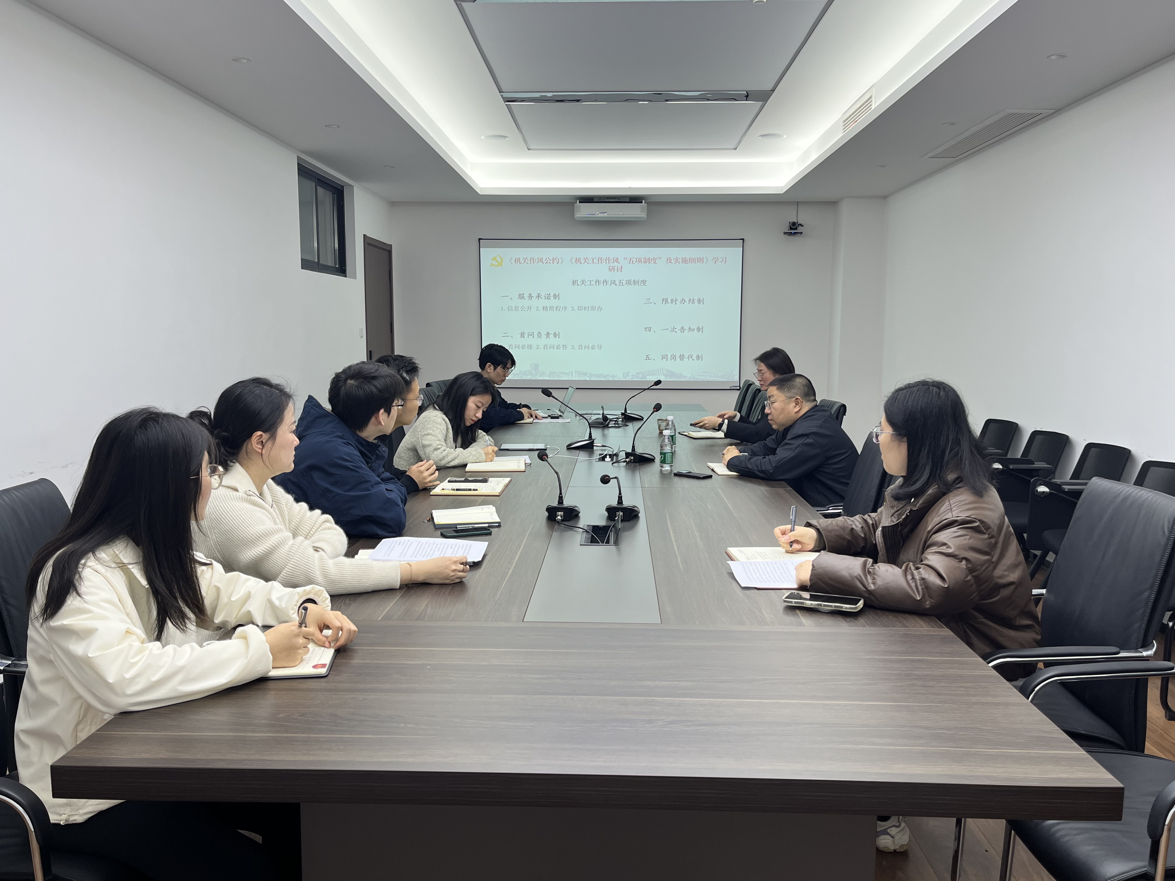 近日,91探花 机关党支部在91探花 8433会议室召开作风建设专题研讨会,学习研讨《机关作风公约》和《机关工作作风“五项制度”及实施细则》。支部全体成员参加,会议由支部书记庞淞元主持。