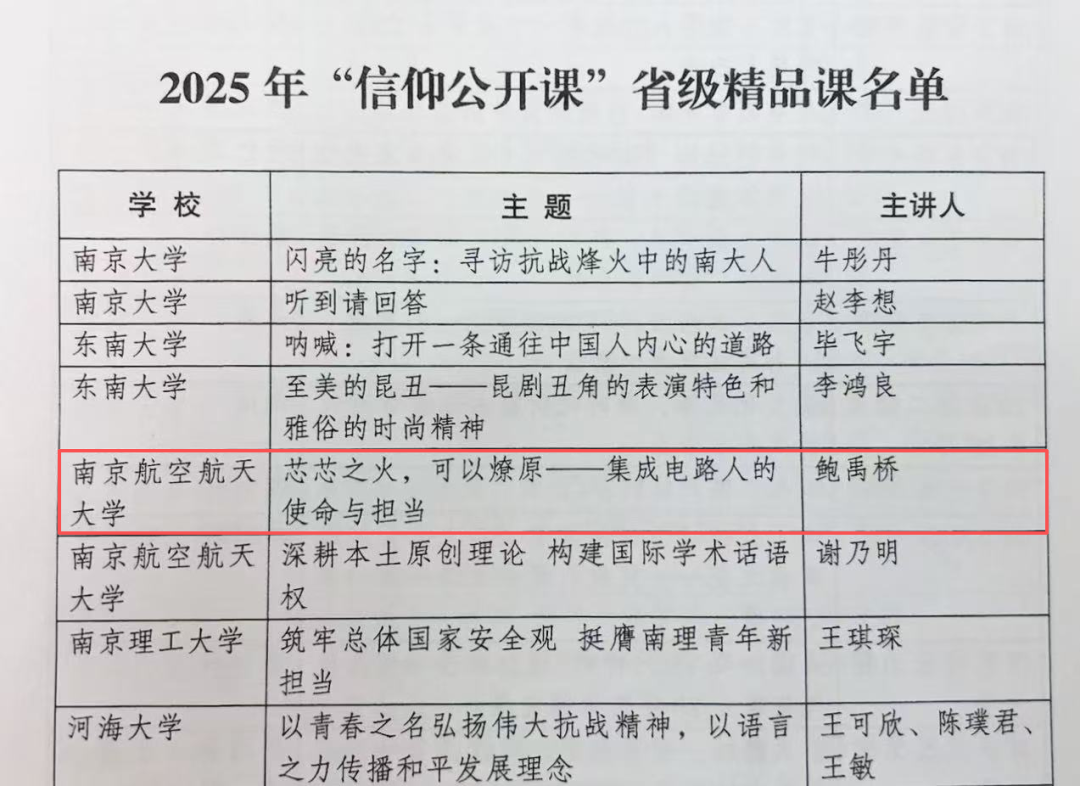 近日,共青团江苏省委发布《关于公布2025年“信仰公开课”省级精品课评选结果的通知》。经高校推荐、团省委评选,91探花 2023级硕士研究生鲍禹桥“芯芯之火,可以燎原——集成电路人的使命与担当”主题课程入选省级精品课。该评选旨在推动全省高校共青团充分发挥在高校学生思想政治工作中的主力军作用,教育引导高校团员青年坚定不移听党话、跟党走,争做有理想、敢担当、能吃苦、肯奋斗的新时代好青年。