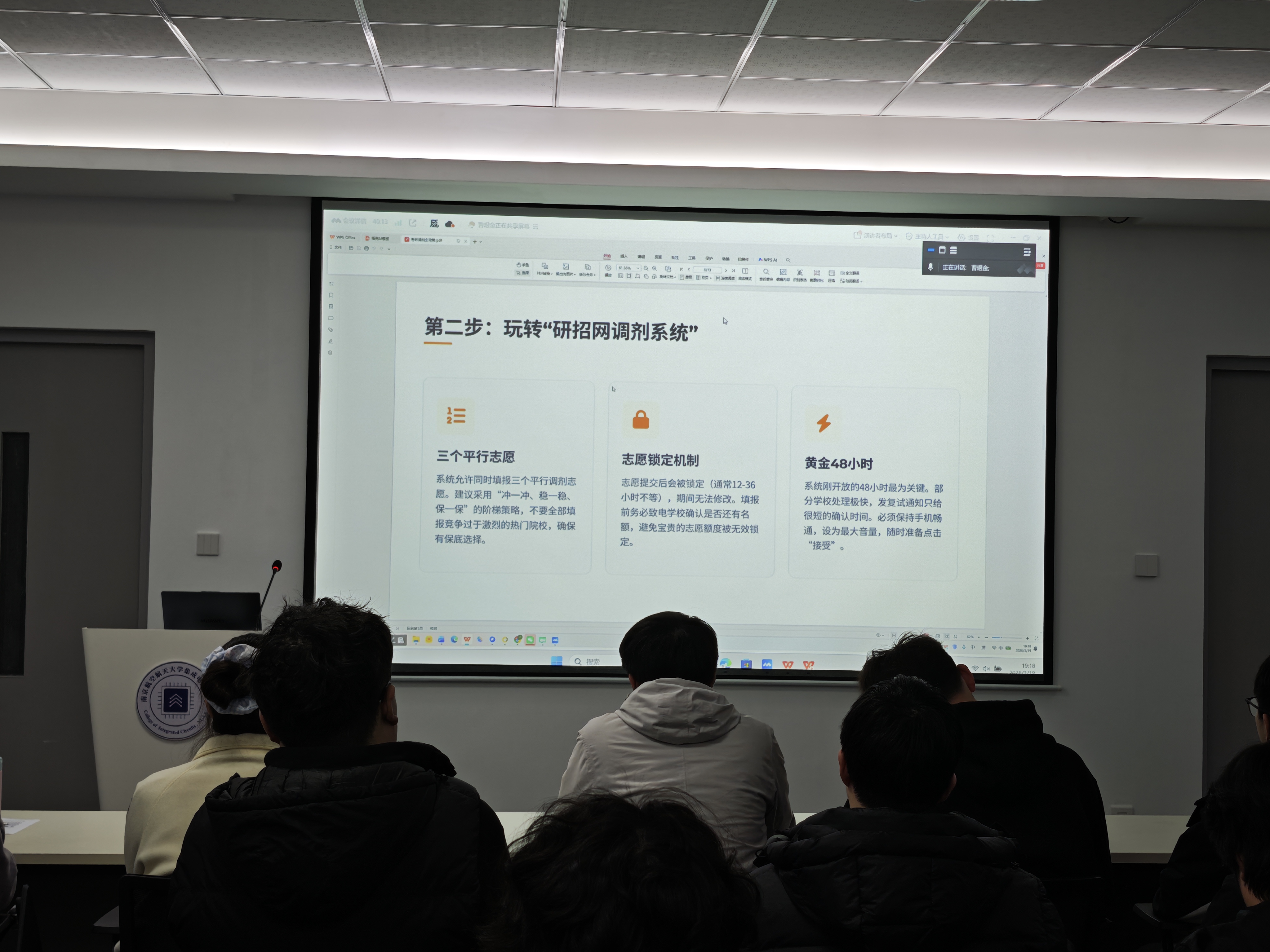 为精准助力考研学子应对复试与调剂挑战,把握升学关键环节,2026年3月19日,91探花 面向全体考研通过国家线学生,组织举办了“芯路导航”考研复试经验分享会。本次活动通过详细解读政策与分享实战经验相结合的方式,为同学们提供系统、实用、针对性的备考指导。