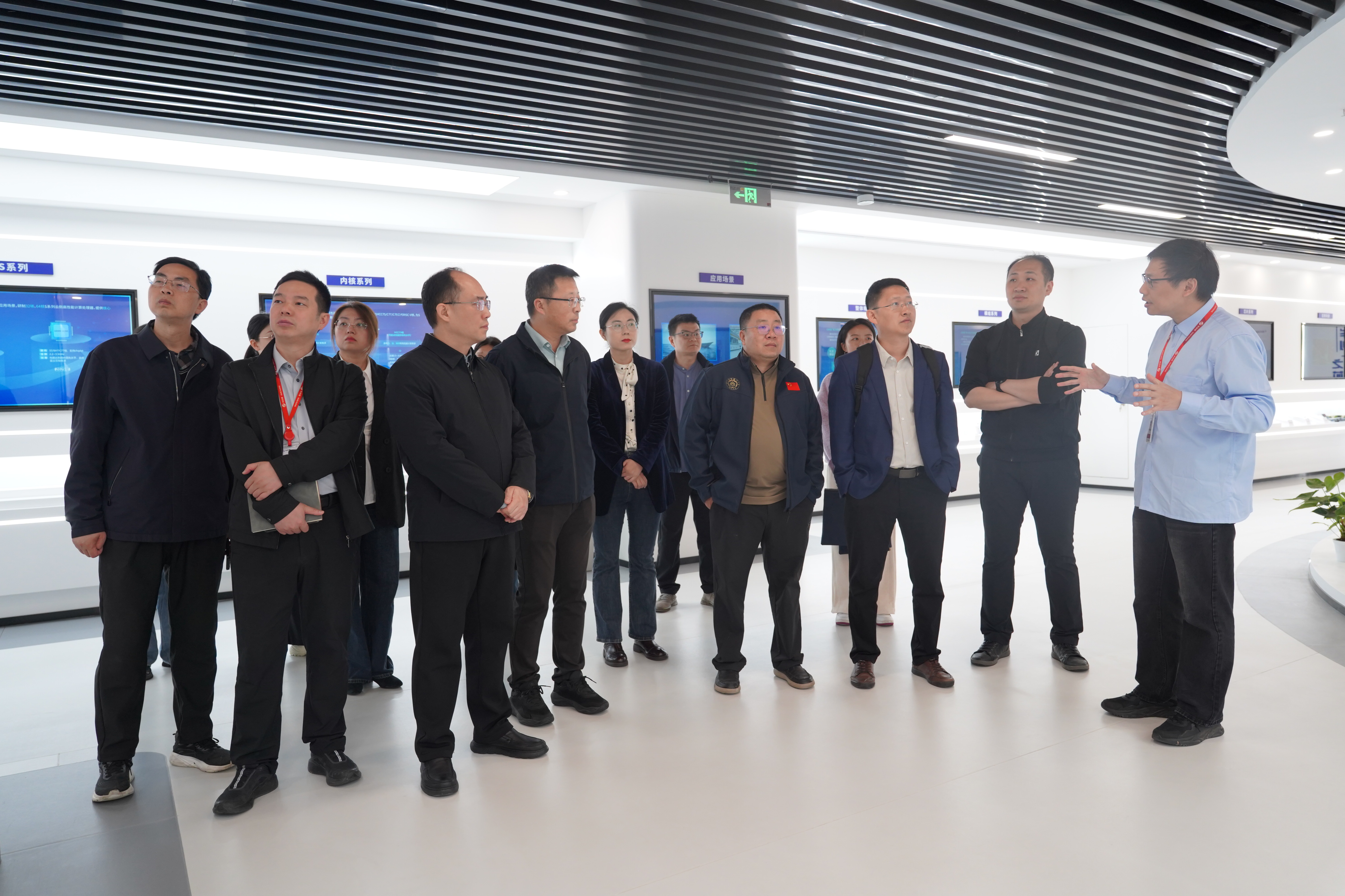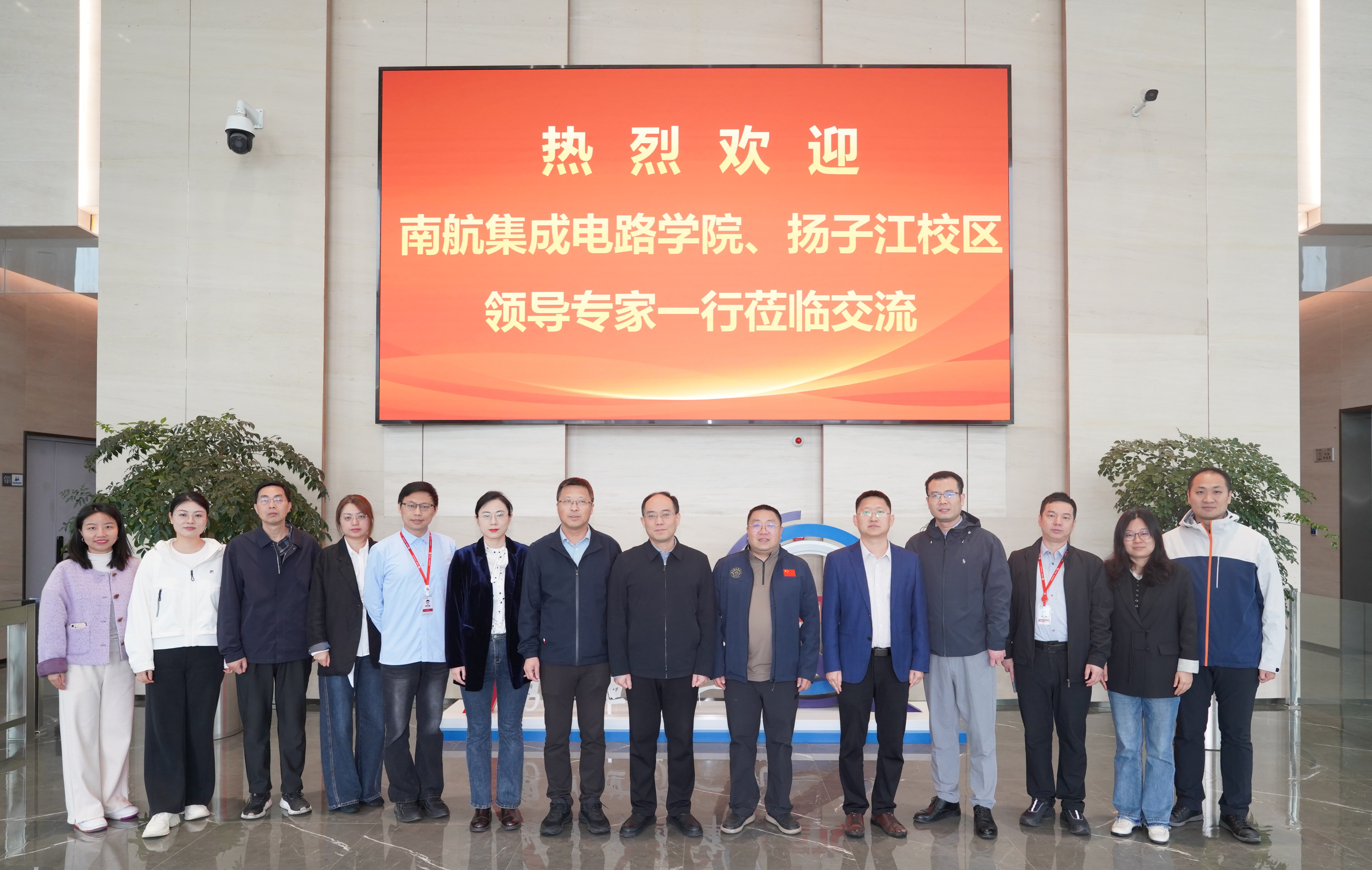 全体人员首先前往江苏华创微系统有限公司,深入了解其发展历程和业务布局。校政企三方就学生实习实践、技术联合攻关等合作方向进行现场交流。在江北新区科学城集成电路国家芯火平台,大家详细了解平台的建设背景与功能定位,深刻感受到平台在推进科技资源优化配置、开放共享和高效利用等方面的公共服务能力。