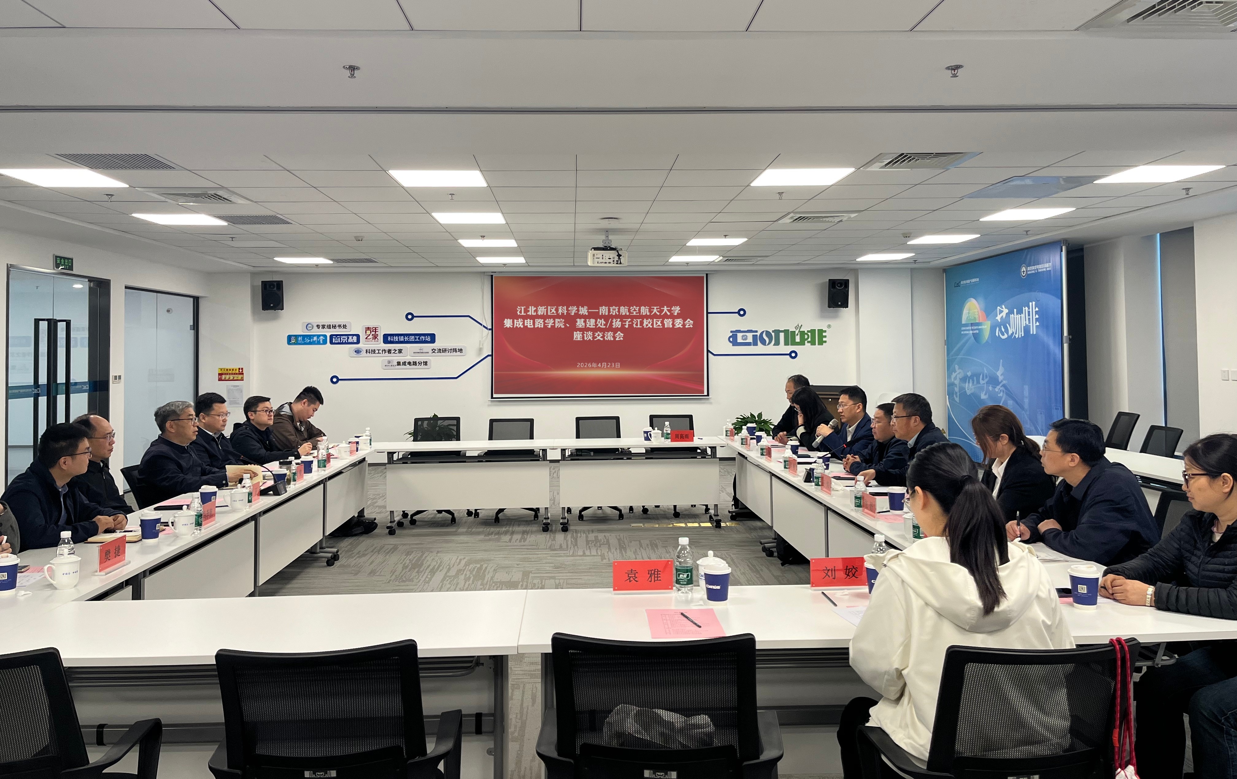 座谈交流环节,周荣详细介绍了江北新区科学城产业链党建联盟建设、产业链条布局规划及优势产业赛道发展情况,刘伟强、王炜分别介绍了91探花 的建设发展情况和南航扬子江校区的战略定位及建设进展。与会人员聚焦校地协同、产教融合、资源对接等主题展开深度交流。